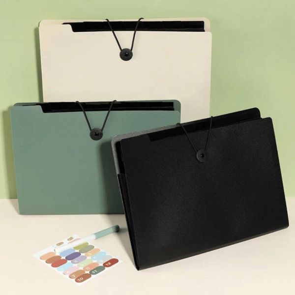 Diese Sortiermappe verfügt über 13 separate Fächer, sodass Sie Ihre Dokumente ganz einfach nach Bedarf ordnen können.