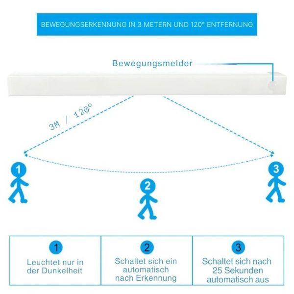 ✅ Intelligente Bewegungserkennung – Infrarotsensor, der Bewegungen in einem Bereich von 3 bis 5 Meternerkennt und sich automatisch nach 20 bis 30 Sekunden ausschaltet.