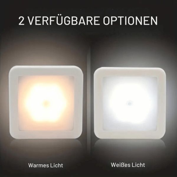 Dieses Set aus zwei LED-Nachtlichtern wurde entwickelt, um automatisch sanftes Licht in Ihre Wohnbereiche wie Badezimmer, Flur, Bett, Treppe oder Toilette zu bringen.