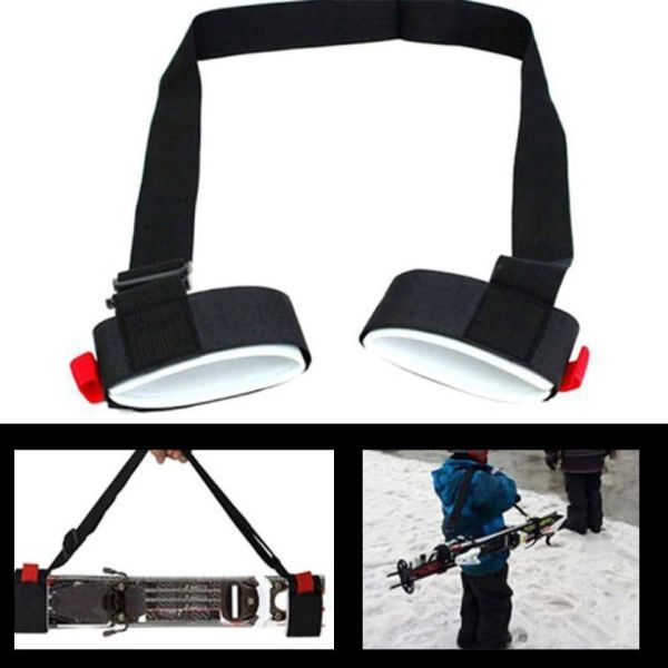 Diese Ski- und Stockhalterungsgurte bestehen aus robustem Nylon mit verstärkten Nähten, die für eine lange Haltbarkeit sorgen.