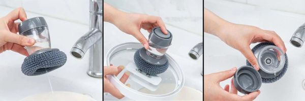 Diese Reinigungsbürsten wurden entwickelt, um herkömmliche Schwämme auf jede erdenkliche Weise zu verbessern. Integrierter Flüssigkeitsbehälter: Beim Putzen drücken Sie einfach auf den oberen Teil, um die Flüssigkeit abzulassen.