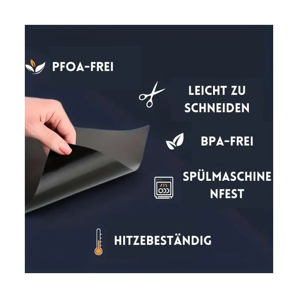 Verwandeln Sie Ihr Kocherlebnis mit unserer wiederverwendbaren antihaftbeschichteten Backofenmatte, dem unverzichtbaren Küchenzubehör für Hobbyköche und erfahrene Köche.