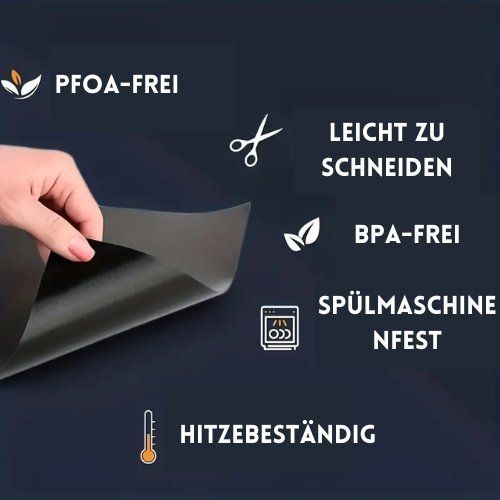 Erleben Sie stressfreies Kochen mit unserer wiederverwendbaren antihaftbeschichteten Backofenmatte.
