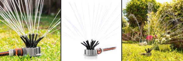 Effektiver Sprinkler mit 360-Grad-Abdeckung. Spart Wasser und hält den Garten gut bewässert