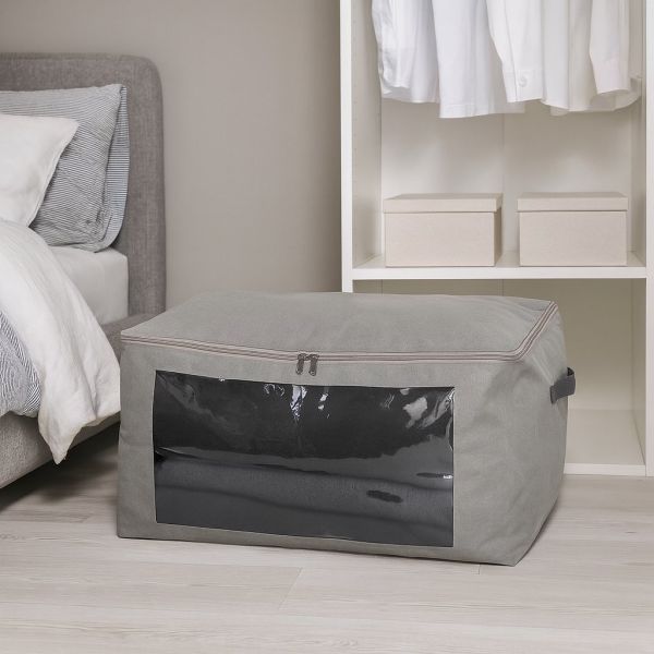 Dank der rechteckigen Form und der Höhe von 25 cm eignen sich die Taschen perfekt für die Aufbewahrung unter dem Bett. Sie sind außerdem faltbar, wenn sie nicht benutzt werden, und benötigen so nur minimalen Stauraum. Die schlichte graue Farbe passt in jedes Zuhause.