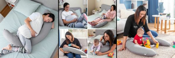 - Anpassungsfähig, verschiedene Positionen: dieses Stillkissen passt sich an verschiedene Positionen an. Schwangere Frauen legen es oft zwischen ihre Beine, um Bauch und Kopf zu stützen, wenn sie auf der Seite schlafen oder in den Rücken, wenn sie im Bett sitzen. Das Baby kann darin, auf dem Bett oder auf den Beinen der Eltern, liegen.