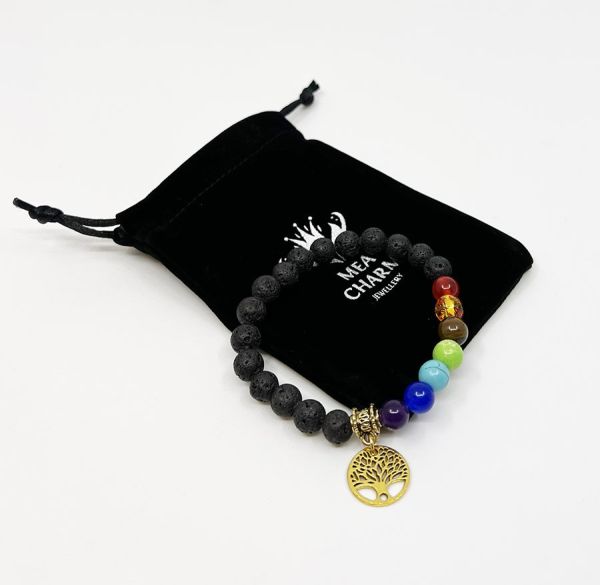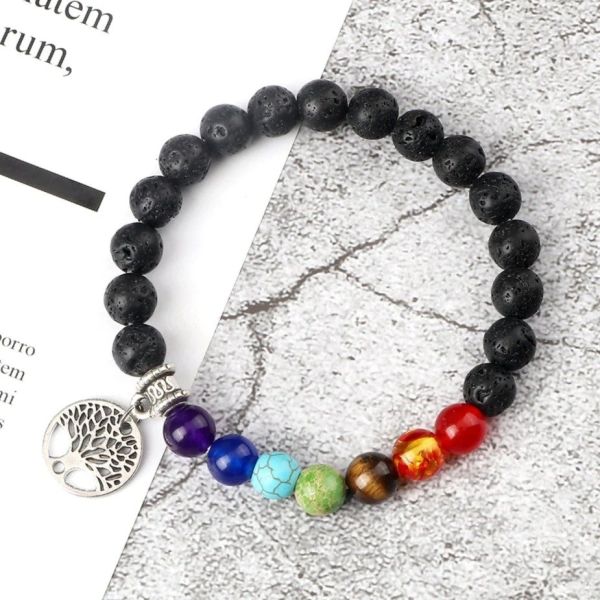 7 Chakras Armband mit Lebensbaum und Lavasteinen