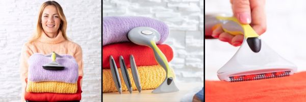 Der größere Kopf eignet sich für Wolle, Mischgewebe, synthetische Materialien und Polyester. Der mittlere Kopf eignet sich für Kaschmir, Merinowolle und andere feine Wolle, Decken und Fleecefutter. Der feine Kopf eignet sich für dünne Stoffe, T-Shirts, Seidenmischungen und empfindliche Kleidungsstücke.