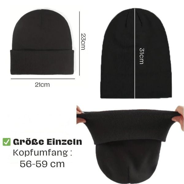 Die Mütze hat eine Einheitsgröße und passt sich dank ihrer Elastizität perfekt an alle Kopfformen an.
