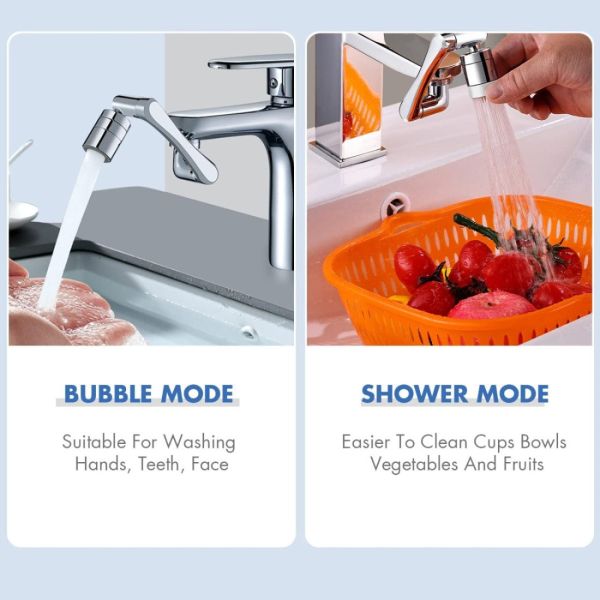 Diese 1080° drehbare Wasserhahnverlängerung ist das revolutionäre Gadget, das Ihre Erfahrung bei jedem Gang ins Badezimmer verändern wird! Diese innovative Verlängerung wurde entwickelt, um Ihre täglichen Aufgaben zu erleichtern und Ihnen eine unvergleichliche Flexibilität bei der Verwendung Ihres Wasserhahns zu bieten.