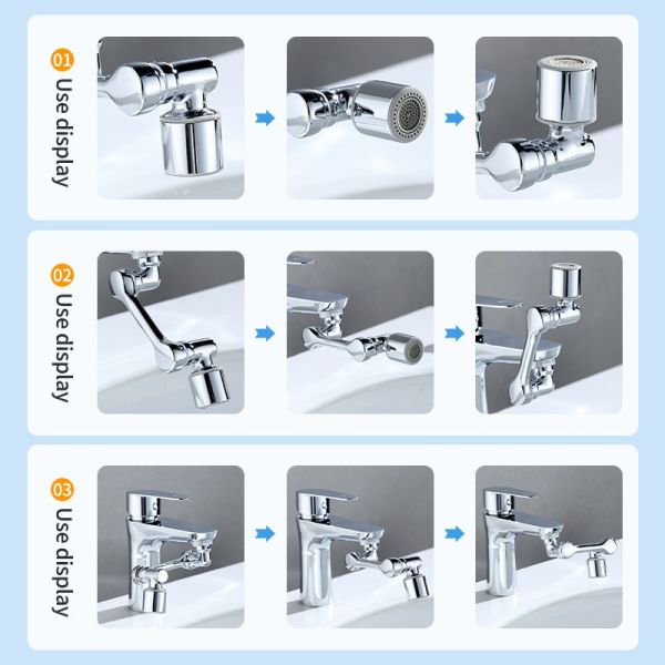 - Hahnverlängerung kann durch Drehen von drei Gelenken auf verschiedene Winkel für das tägliche Waschen eingestellt werden, die Höhe sowie der vordere und hintere Winkel sind frei einstellbar. Sie können den Wasserhahn leicht in die gewünschte Richtung drehen, was beim Waschen von Gesicht, Haaren und Zähnen praktischer ist. Praktischer und schneller verhindert es, dass Wassertropfen herausspritzen.