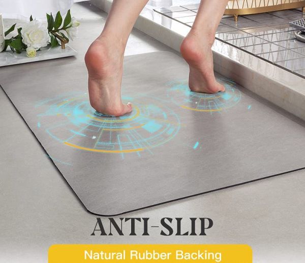 Ce tapis absorbe bien, il est facile à nettoyer. Je l'ai même mis à la machine à laver et non dans le sèche-linge, et il est confortable pour mes pieds.
