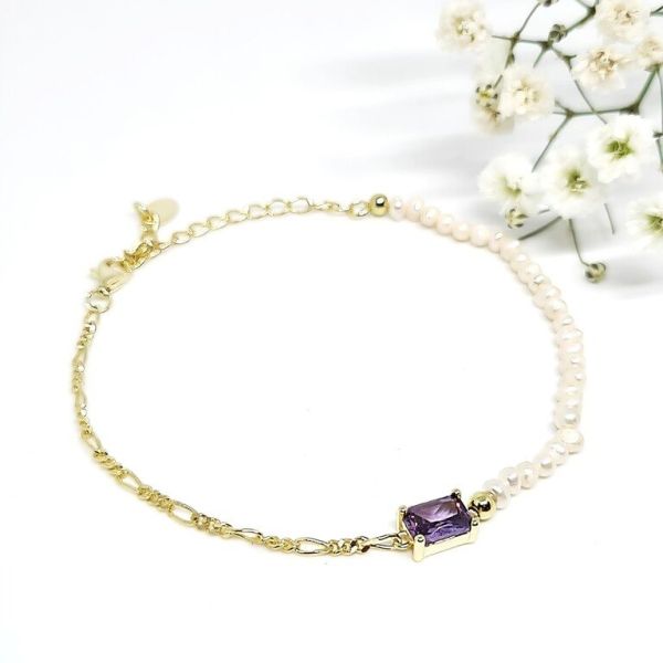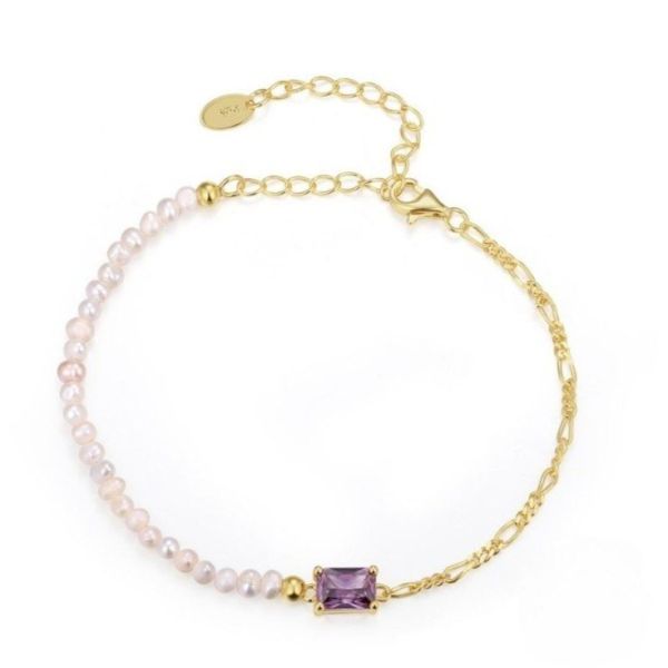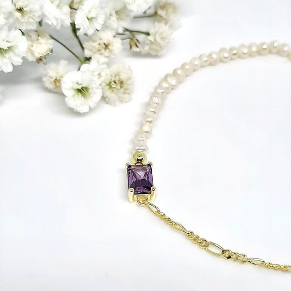 | Steine | Kubischer Zirkon AAAA (violett) und gezüchtete Süßwasserperlen. |