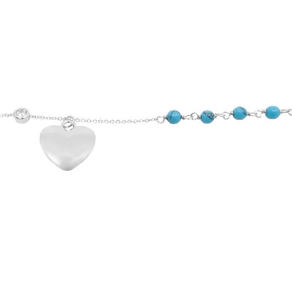 Dieses bezaubernde Armband vereint Eleganz und Verspieltheit auf eine gekonnte Art. Die 6 runden Türkiskugeln verleihen dem Armband mit Herz Anhänger einen sommerlichen Flair.