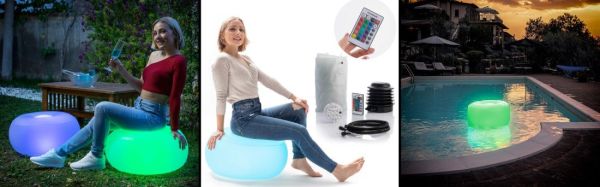 Aufblasbarer Hocker mit mehrfarbiger LED-Beleuchtung und Fernbedienung