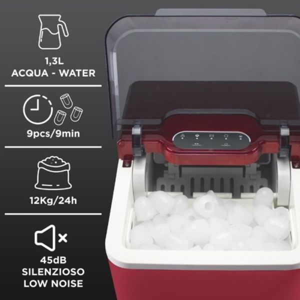 Entdecken Sie den Komfort der schnellen Herstellung von Eiswürfeln mit der Beper-Maschine, einem Muss für Ihre Partys und täglichen Erfrischungen, die in 24 Stunden bis zu 12 kg Eis produziert.