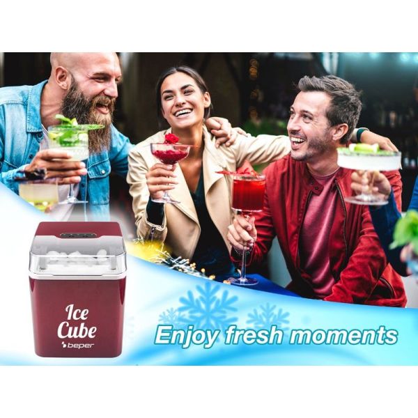Erleben Sie den Komfort der schnellen Herstellung von Eiswürfeln mit der Beper-Maschine, ein Muss für Ihre Partys und täglichen Erfrischungen, denn sie produziert bis zu 12 kg Eis in 24 Stunden.