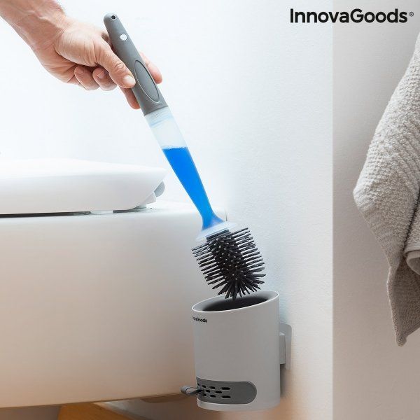Der Griff lässt sich abnehmen und mit einem flüssigen WC-Reiniger befüllen, der per Knopfdruck freigesetzt wird. Er enthält zusätzlich eine selbstklebende Halterung zum Aufhängen an der Wand, falls gewünscht.