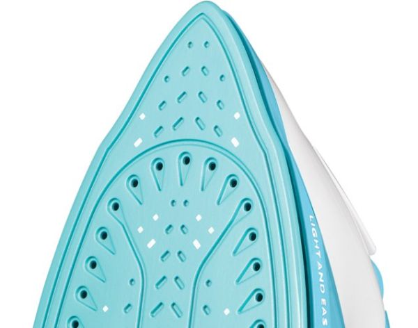 Das Light and Easy Brights Aqua Bügeleisen verfügt über einen kontinuierlichen Dampfausstoß von 35 g/min, der das Bügeln erleichtert, und eine 115 g/min starke Pressing-Funktion, die alle Knitterfalten entfernt.