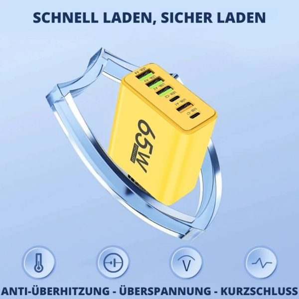 Es ist mit vielen Smartphones, Tablets und Laptops kompatibel und bietet eine Leistung von 65 W für ein schnelles und effizientes Aufladen.