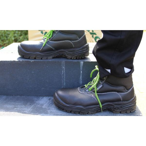Die Außensohle besteht aus Polyurethan mit doppelter Dichte und bietet hervorragenden Halt und Verschleißfestigkeit. Die 200 J widerstandsfähige Stahlkappe schützt Ihre Füße vor Stößen und Stürzen, während die durchtrittsichere Edelstahlsohle zusätzlichen Schutz vor scharfen Gegenständen bietet.