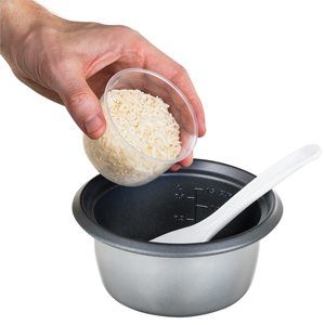 Verwenden Sie den praktischen Messbecher, um die genaue Menge an Reis zu wählen, die Sie kochen möchten. Und wenn Ihr Reis fertig ist, wird ein Löffel zum Servieren mitgeliefert.