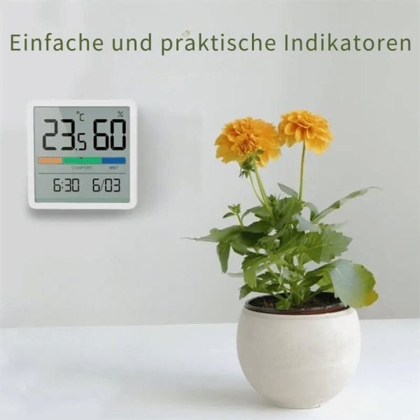 Mit diesem kompakten digitalen Thermometer und Hygrometer können Sie die Temperatur und Luftfeuchtigkeit in Ihrem Haus oder Büro messen.