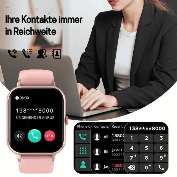 Ich trage die Uhr täglich. Sie sieht elegant aus und zeigt mir alles Wichtige auf einen Blick – Nachrichten, Anrufe und Schritte. Sehr praktisch im Alltag!