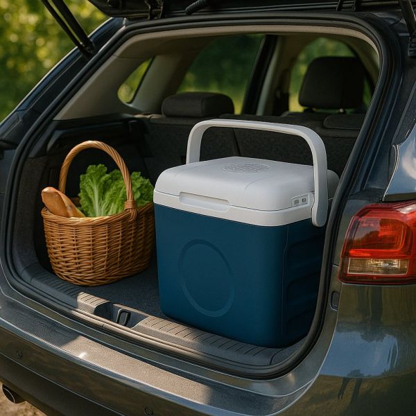 Gute Größe für Tagesausflüge. Die Box hält Getränke zuverlässig kühl und ist leicht zu tragen. Die Temperatur von kalt bis warm ist flexibel regelbar – perfekt für Camping oder Roadtrip