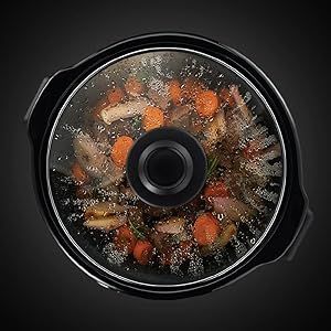 Mit einem Fassungsvermögen von 3,5 Litern für Familien können Sie vier großzügige Portionen köstlicher Gerichte zubereiten, ohne hinter dem Herd stehen zu müssen. Leckere Fleischgerichte, vegetarische Schmorgerichte, würzige Currys oder Chilis: Alles ist fertig, Sie müssen es nur noch aufwärmen! Langsames Garen ist die beste Methode, um in aller Ruhe leckere Gerichte zuzubereiten, bei denen alle Aromen erhalten bleiben.
