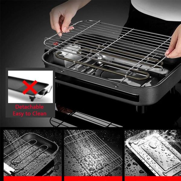 Perfekt für kleine Räume – ob Studio, Büro oder Wohnzimmer – wird dieser Grill einfach auf Ihrem Tisch oder Ihrer Arbeitsfläche platziert und an einer normalen Steckdose betrieben. Dank seines kompakten Formats fügt er sich stilvoll in jede Umgebung ein und ermöglicht jedem am Tisch, Fleisch, Gemüse oder Spieße ganz nach Geschmack zu garen, ohne den Platz verlassen zu müssen.