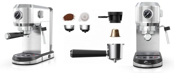 Genießen Sie geschmacksintensiven Espresso und schaumigen Cappuccino mit dem integrierten Milchaufschäumer, mit dem Sie Getränke wie ein professioneller Barista kreieren können. Dank des transparenten Wassertanks können Sie den Wasserstand leicht überwachen, während die abwaschbare Abtropfschale eine einfache Wartung gewährleistet.