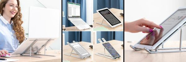 - Vielseitig: Aufgrund seiner Eigenschaften und Vorteile ist dieser tragbare Ständer sehr praktisch und vielseitig und eignet sich für eine Vielzahl von Geräten wie Laptops, Tablets, Kinderleser, Mobiltelefone und sogar Bücher usw. Ideal für Büros und Telearbeit, da er die Ergonomie des Standes verbessert, indem er eine bequemere und korrektere Haltung ermöglicht.