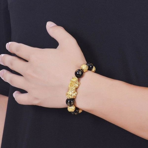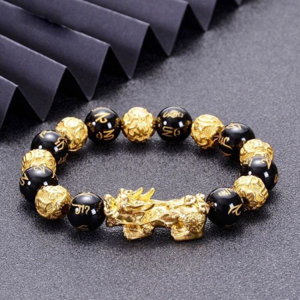 Dieses Feng-Shui-Armband vereint die Vorteile des Pixiu und des schwarzen Obsidiansteins, um Ihnen ein besseres Feng Shui zu ermöglichen.