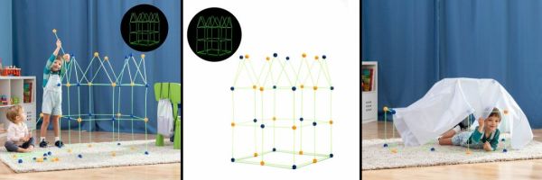 Mit diesem 155-teiligen Fort-Bausatz für Kinder können Kinder ihre Fantasie entwickeln und endlose Strukturen bauen, die im Dunkeln leuchten.