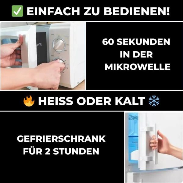 ✅ Warm oder kalt – je nach Bedarf – 60 Sekunden in der Mikrowelle für wohltuende Wärme, 2 Stunden im Gefrierfach für kühlende Linderung bei Entzündungen und Schwellungen.