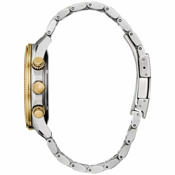 Das Edelstahlarmband dieser Uhr ist sowohl robust als auch komfortabel, sodass es sich perfekt an Ihr Handgelenk anpasst. Das zwei-tonale Design, das das silberne Edelstahl und einen Hauch von Gold an der Gehäuseblende kombiniert, verleiht dem gesamten Look eine elegante Note. Dieses Armband ist darauf ausgelegt, lange zu halten und während des gesamten Tages maximalen Komfort zu bieten.