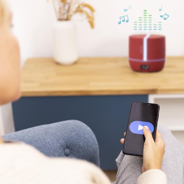 - Integrierter Lautsprecher: Hören Sie Ihre Lieblingslieder, während Sie die Vorteile der Luftbefeuchtung und der ätherischen Öle genießen.