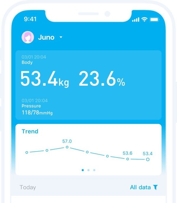 Mit vier großen Rassenmodellen und 260 Millionen integrierten Wiegedaten sind die Messergebnisse stabil und genau. Die Oberfläche der PICOOC S3-Waage ist mit einer ITO-Beschichtung versehen und wirkt hochmodern. Es bietet zwei Verbindungsmodi: WLAN und Bluetooth. Sie müssen das Bluetooth Ihres Mobiltelefons nicht einschalten, bevor Sie die Waage betreten. Für eine komfortablere Nutzung können die Messdaten automatisch aktualisiert und in der PICOOC-APP gespeichert werden.