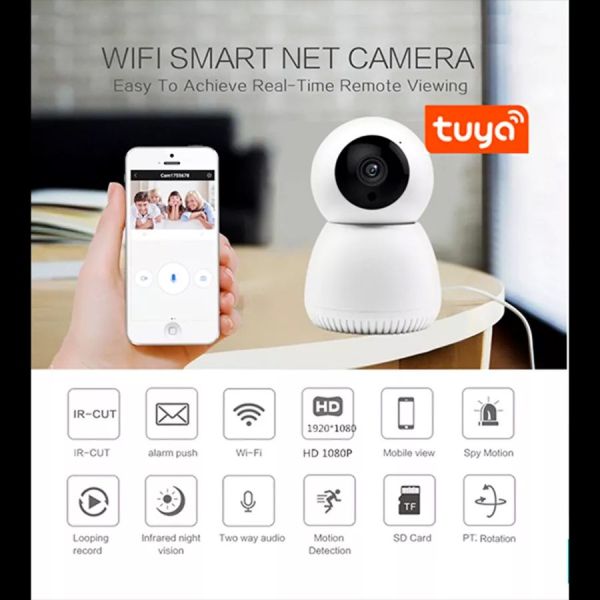 - Highlights : IP-Kamera, Tuya-kompatibel, Motorisiertes Schwenken und Neigen, Lautsprecher und Mikrofon.