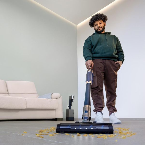Ausgestattet mit einem digitalen Brushless-Motor mit 210 W liefert er eine stabile und langlebige Leistung bei gleichzeitig reduziertem Geräuschpegel. Mit einer Saugleistung von 20 kPa entfernt er effektiv Staub, Krümel und Tierhaare – sogar von dicken Teppichen.