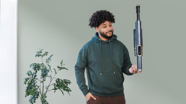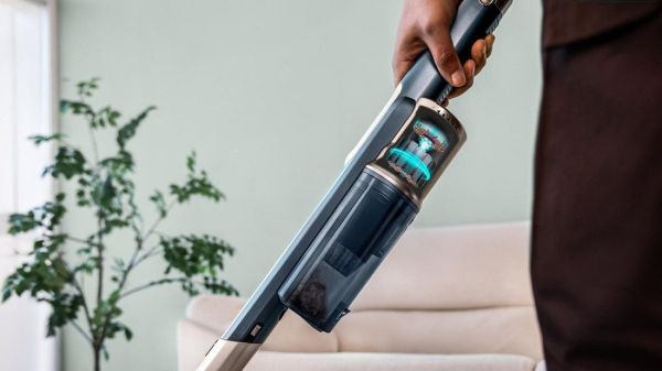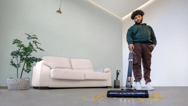 Kabelloser Stabstaubsauger mit automatischer Absaugstation