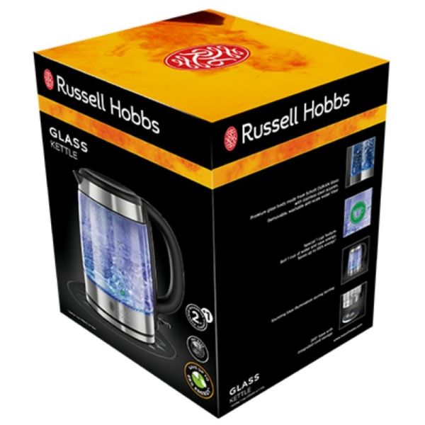 Der Glas-Wasserkocher 21600-70 von Russell Hobbs bringt einen Hauch von Transparenz und Eleganz in Ihre Küche.
