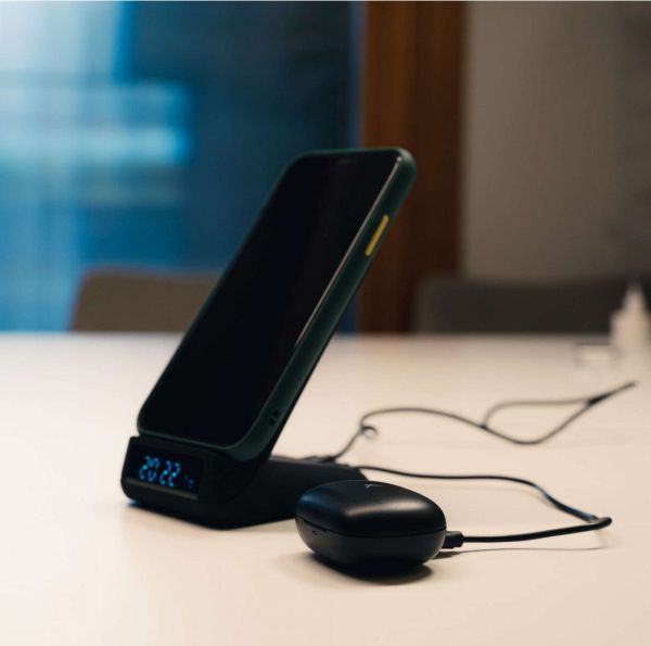 Das brandneue kabellose Ladegerät von KSIX, ein multifunktionales Accessoire, das Praktikabilität, Eleganz und fortschrittliche Funktionen vereint. Dieses kabellose Ladegerät ist viel mehr als nur ein Ladehalter, es verfügt über einen integrierten Wecker und eine Temperaturanzeige, was es zu einem idealen Begleiter für Ihren Alltag macht.