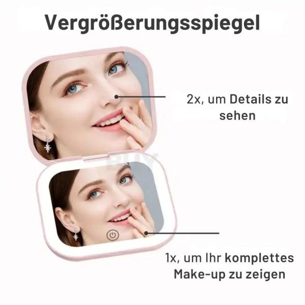 Dieser Spiegel ist das perfekte Schönheitsaccessoire, das Sie überall hin mitnehmen können, egal ob auf Geschäftsreisen oder in den Urlaub.