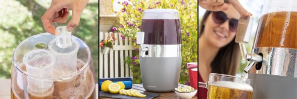 Ein kühlender Getränkespender, der sich ideal zum bequemen Servieren aller Arten von Getränken auf Partys und großen Familienfesten eignet. Seine 2 unabhängigen und herausnehmbaren Eistanks befinden sich zentral im Getränkefach und ermöglichen es Ihnen, Ihr Getränk zu kühlen und gekühlt zu halten, ohne es zu verdünnen.