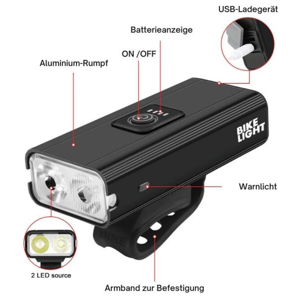 LED-Fahrradlampe 1500 Lumen, wiederaufladbar