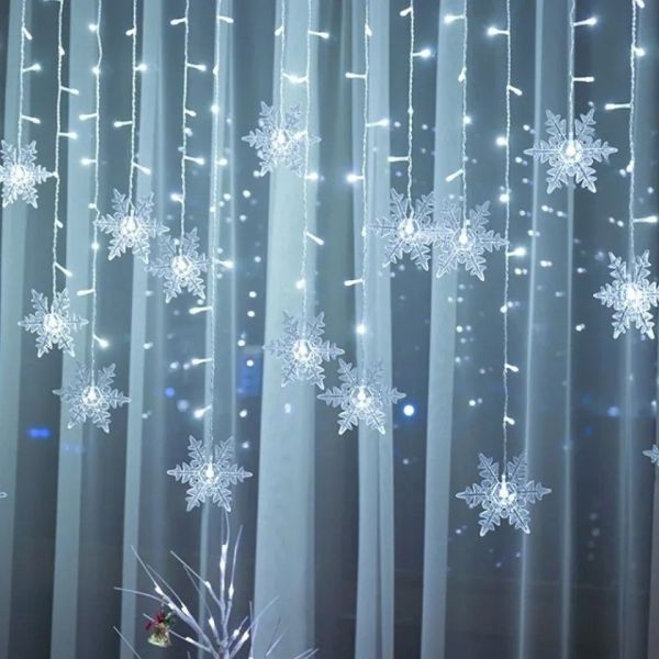 ✅ Lichtervorhang in Form von Schneeflocken für eine zauberhafte Winterdekoration.