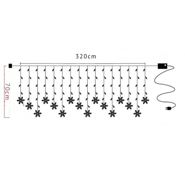 Mit einer Breite von 3,2 Metern und einer Länge von 70 cm ist dieser Lichtervorhang ideal, um Ihre Fenster, Balkone, Gärten oder Außenwände zu dekorieren.