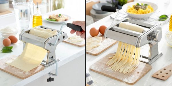 Maschine, mit der du deine frische Pasta selbst herstellen und mit deiner Familie eine Vielzahl an köstlichen Pastagerichten genießen kannst. Ihre Bedienung ist manuell und multifunktional, da sie zum einfachen Kneten, Strecken und Schneiden von Teig dient.
